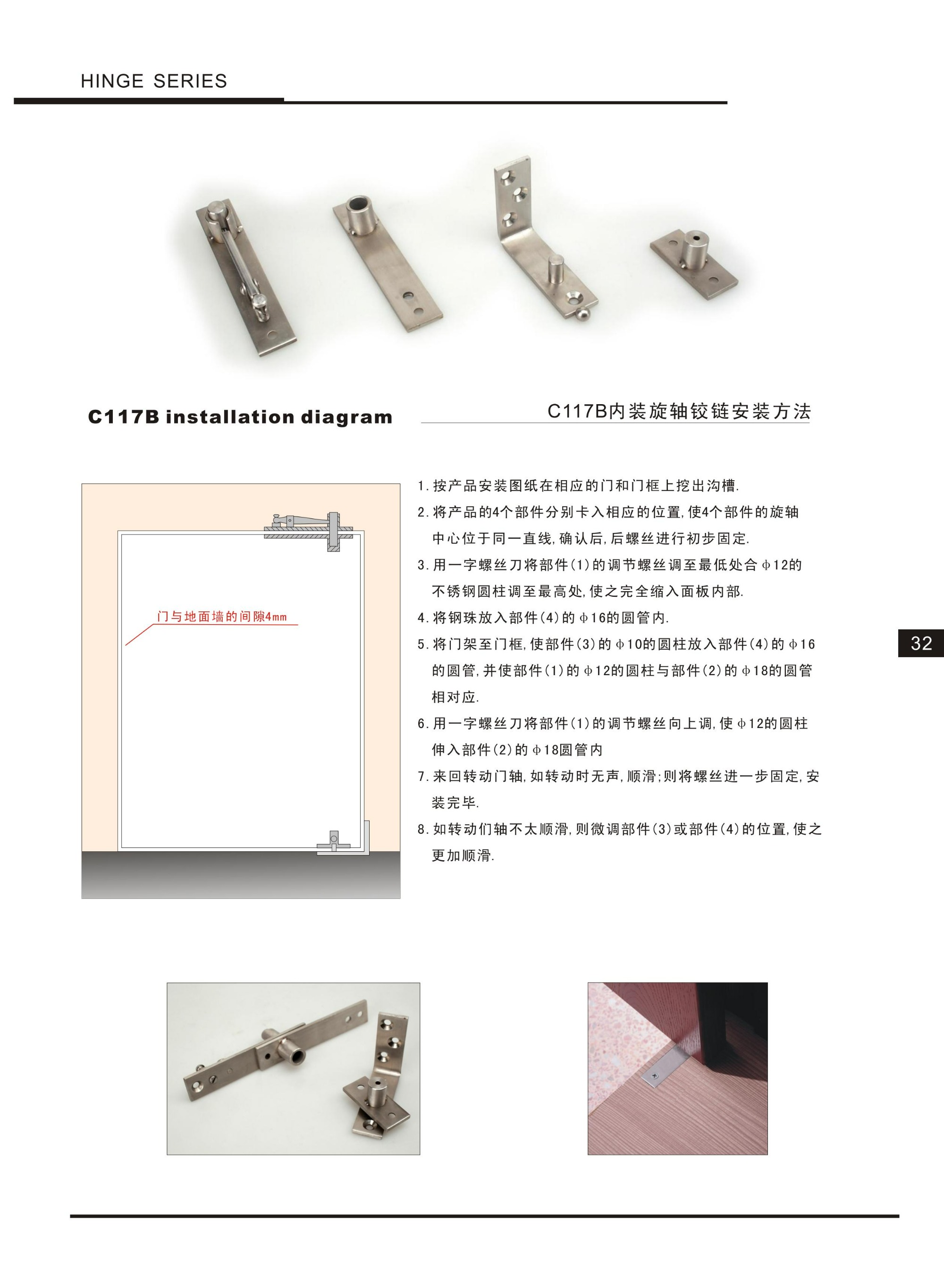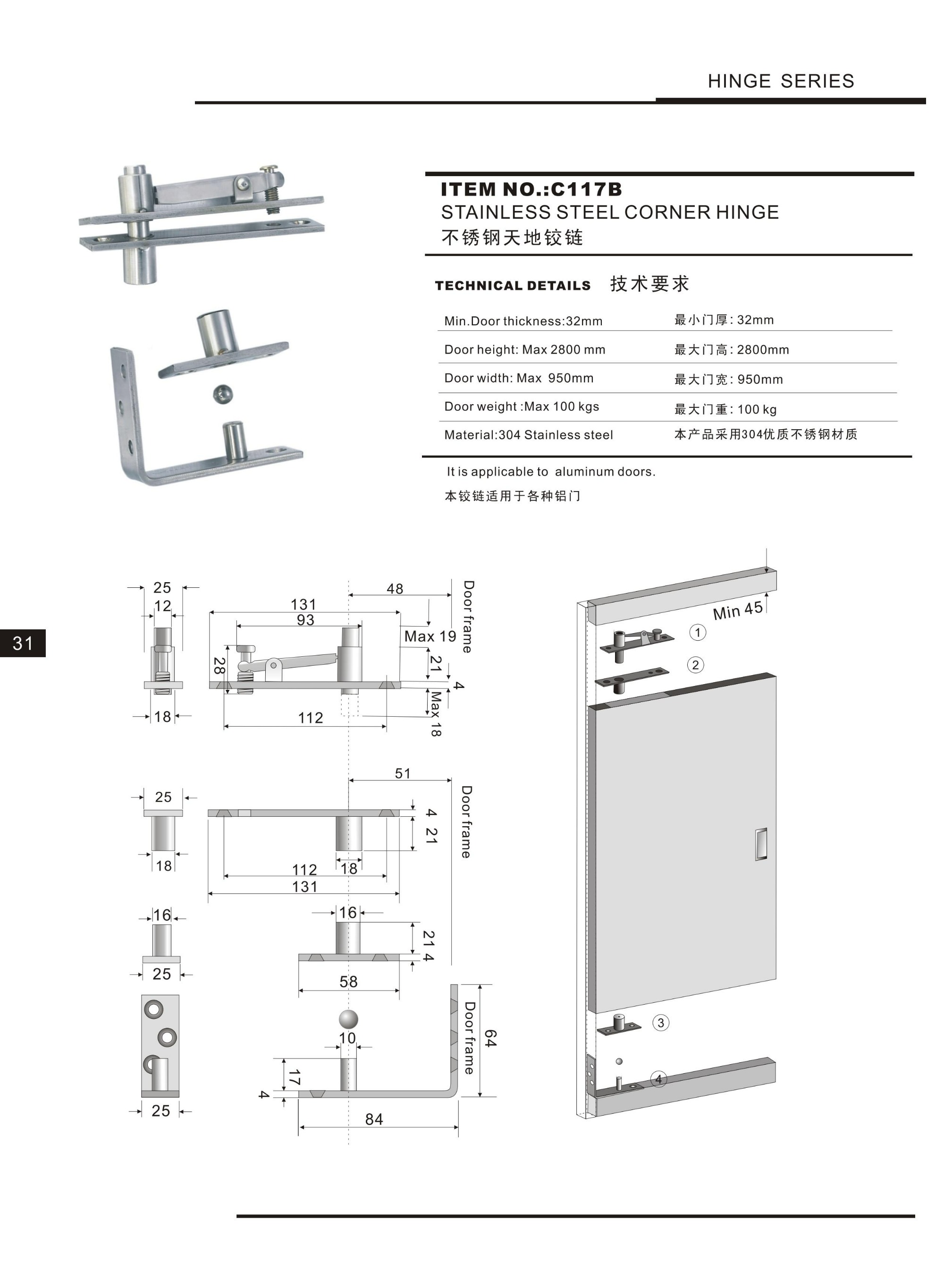 C117-B Stainless Steel 360 Degree Hinges Hidden Revolving Wooden Doors Heaven And Earth Upper And Lower Hinges,Hinge Series