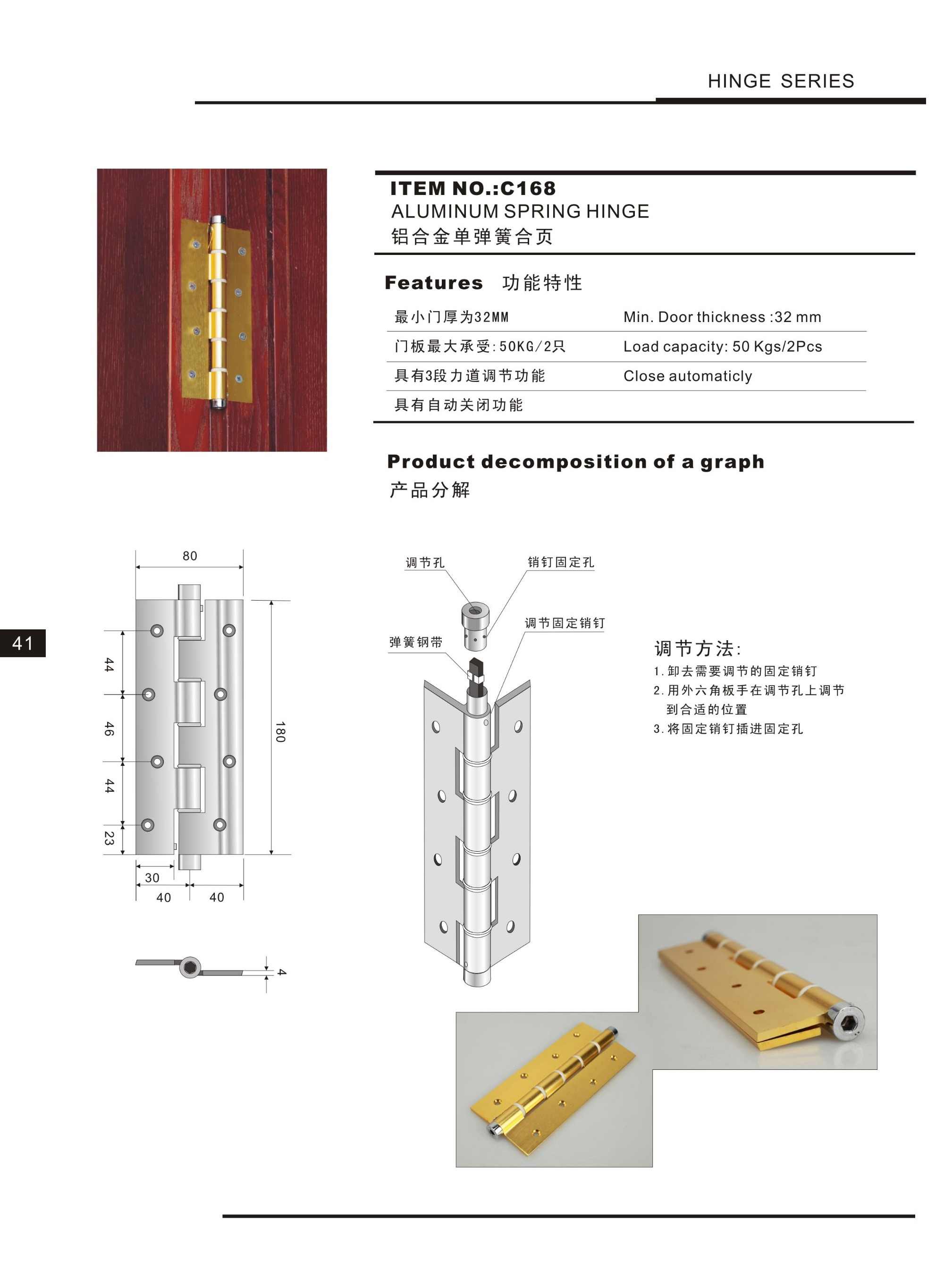 C168 Wholesale Customized Good Quality Cabinet Heavy Duty Aluminum Door Hinge,Hinge Series