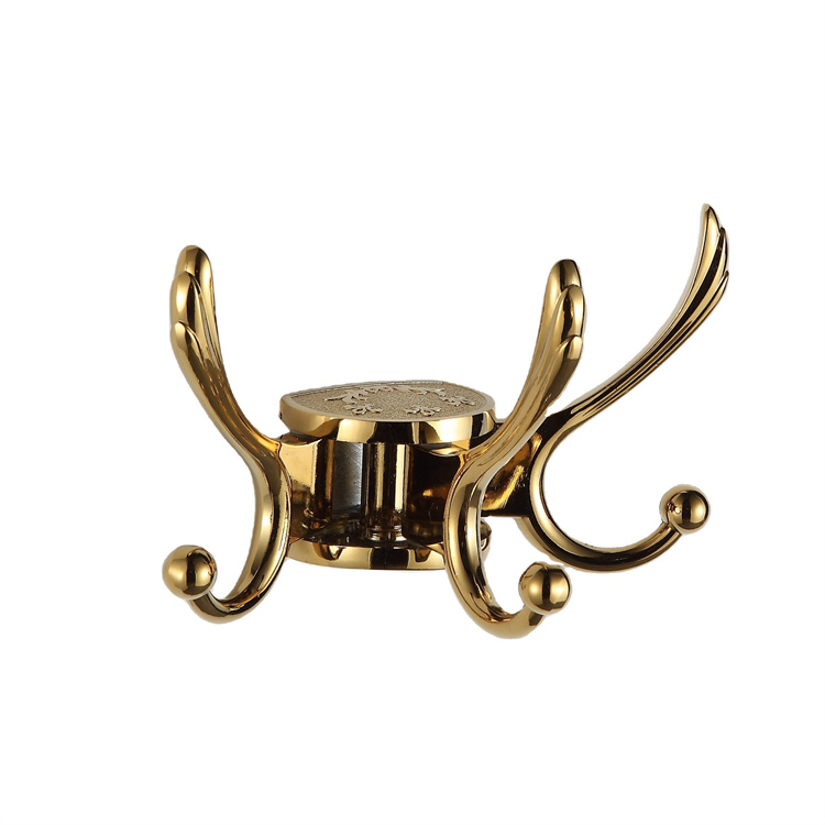 Gold Coat Hooks Bathroom Accessories Metal Wall Mounted Multi Head Clothes Hook Rotatable Zinc Alloy Bathrobe Towel Hook,Bathroom,Bathroom Accessories