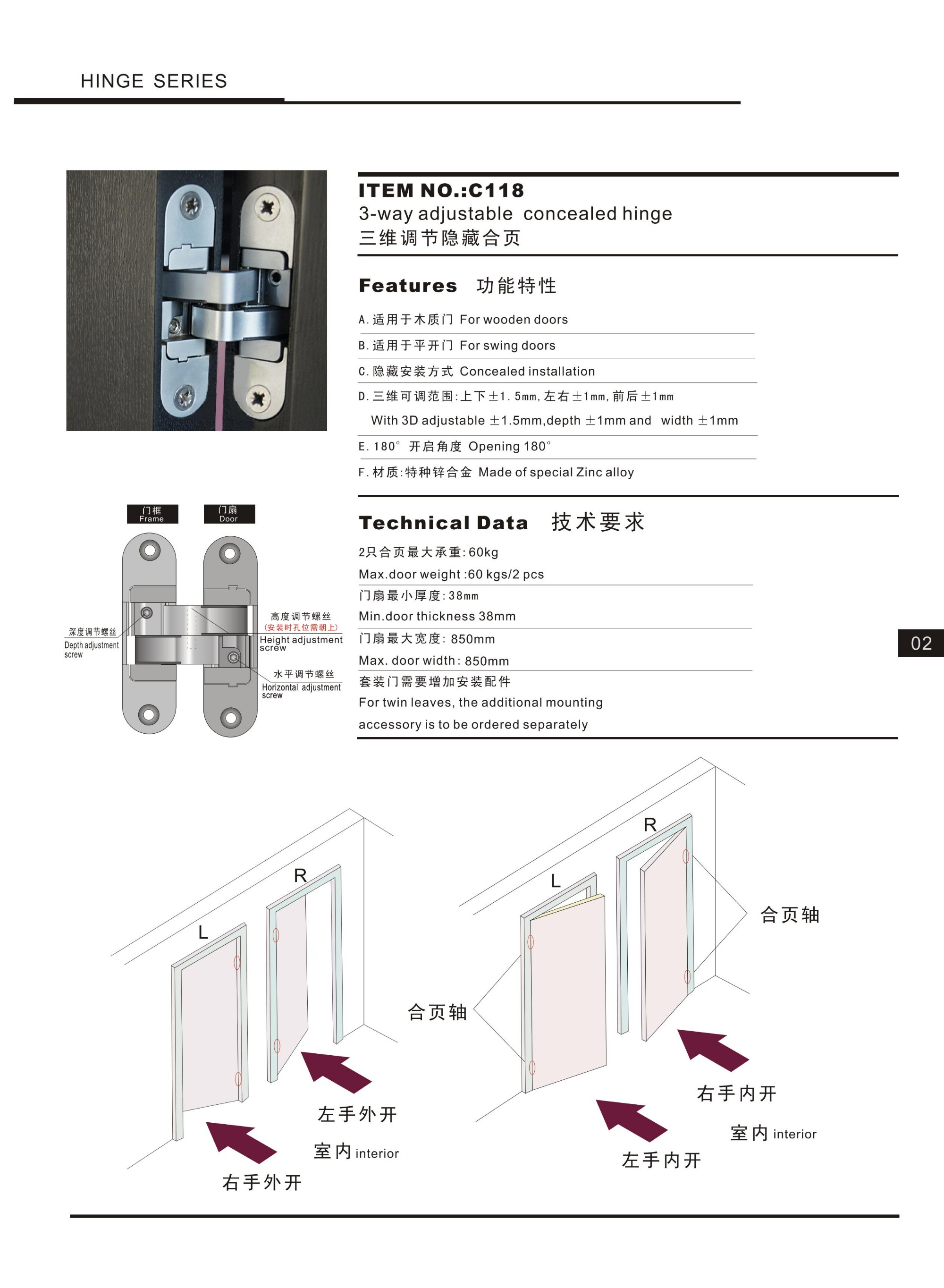 C118 Hot Sale Conceal Installation Wooden And Swing Door Cabinet Hinge,Hinge Series