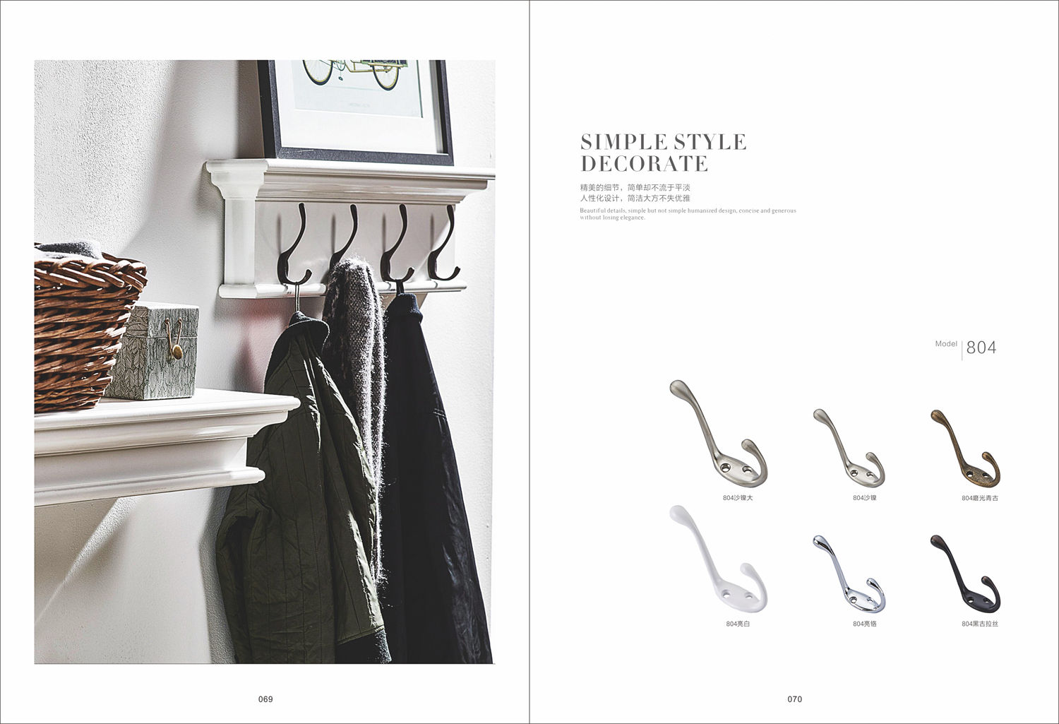 Decorative Hanging Hook Wall Mounted Clothes Hanger Coat Hook Rail Coat Rack Zinc Alloy Clothe Wall Hook